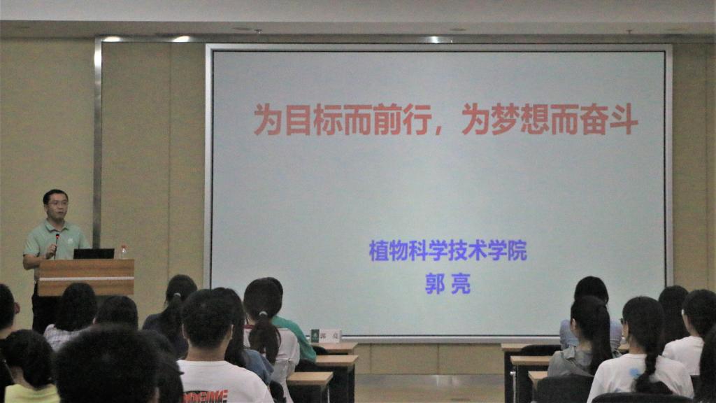 接着,郭亮以高校专业的横向对比,向同学们指出“农业专业就是我们的核心竞争力”,强调了专业选择的重要性。他谈到,目前同学们对未来迷茫且缺少规划,被就业等问题所困扰,但同学们应当相信农业必将大有可为,在这个伟大而美好的时代积极奋进创造。郭亮将“dream”“responsibility”和同学们的研究生生活结合起来,希望同学们重视“责任”在科研生活中的重要性,也希望大家通过学习与思考看懂过去、看清现在和看见未来,在这个过程中保持对自身、对专业的充分自信。