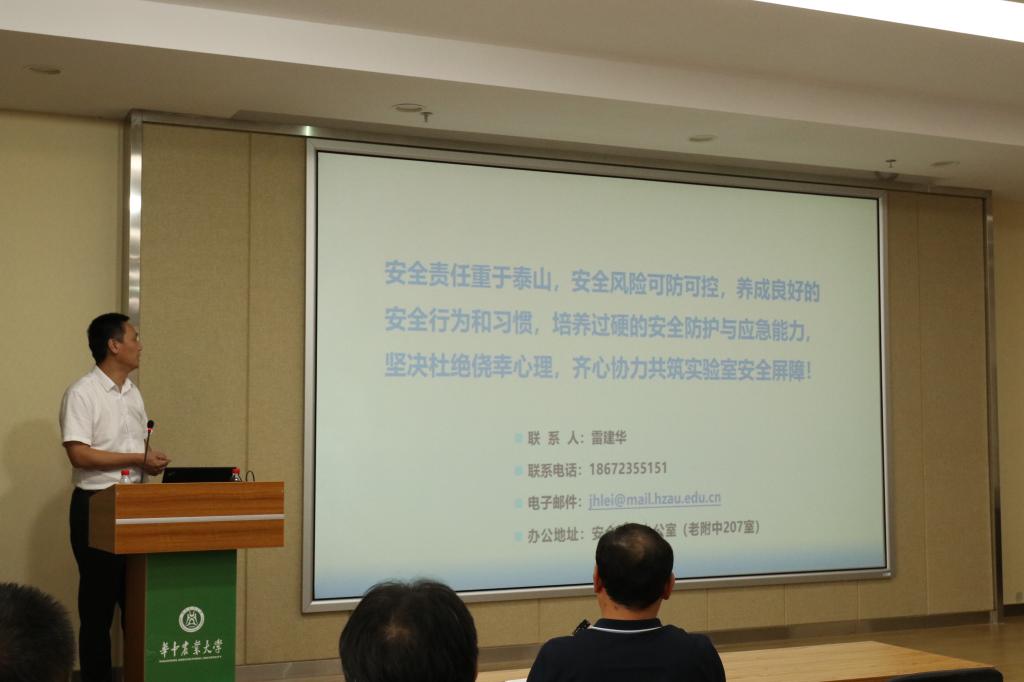 7月5日下午,学院于第三综合楼A705举行全院教工大会,会议邀请建安部安全管理办主任雷建华做了以“落实安全责任 强化风险管理 切实筑牢实验室安全屏障”为专题的培训报告。