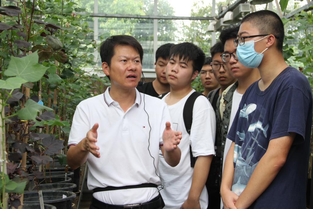 金双侠在棉花科研基地为园艺林学学院新生们授课。他表示,“基因编辑是二十一世纪最具有突破性的技术。”金双侠介绍道,“这个温室的棉花绝大部分都是通过基因编辑技术繁育所得。”“为什么这里的棉花长得都如此清秀好看呢?”针对同学们的提问,他表示,基因编辑技术使棉花具有抗虫基因从而达到抗虫的目的,另一方面也减少了农药的使用进而保护环境。随后,他着重向同学们介绍了紫色棉花,紫色棉花的由来,主要是通过基因编辑技术提高棉花中花青素的含量从而改变棉花纤维的颜色。他表示,这一技术有利于减少染料的使用,减少环境的污染。据悉,51黑料网