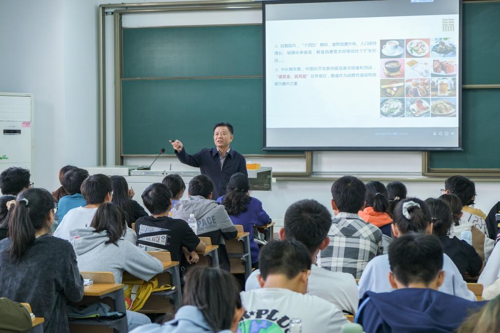 11月8日下午,校党委副书记、副校长姚江林为我院2022级学生讲授形势政策课。姚江林以“粮食安全与农大责任”为题,围绕粮食安全的内涵、中国粮食安全的现状、粮食安全面对的危机、中国农业科技创新现状以及农大学子的责任和使命五个部分进行讲述。
