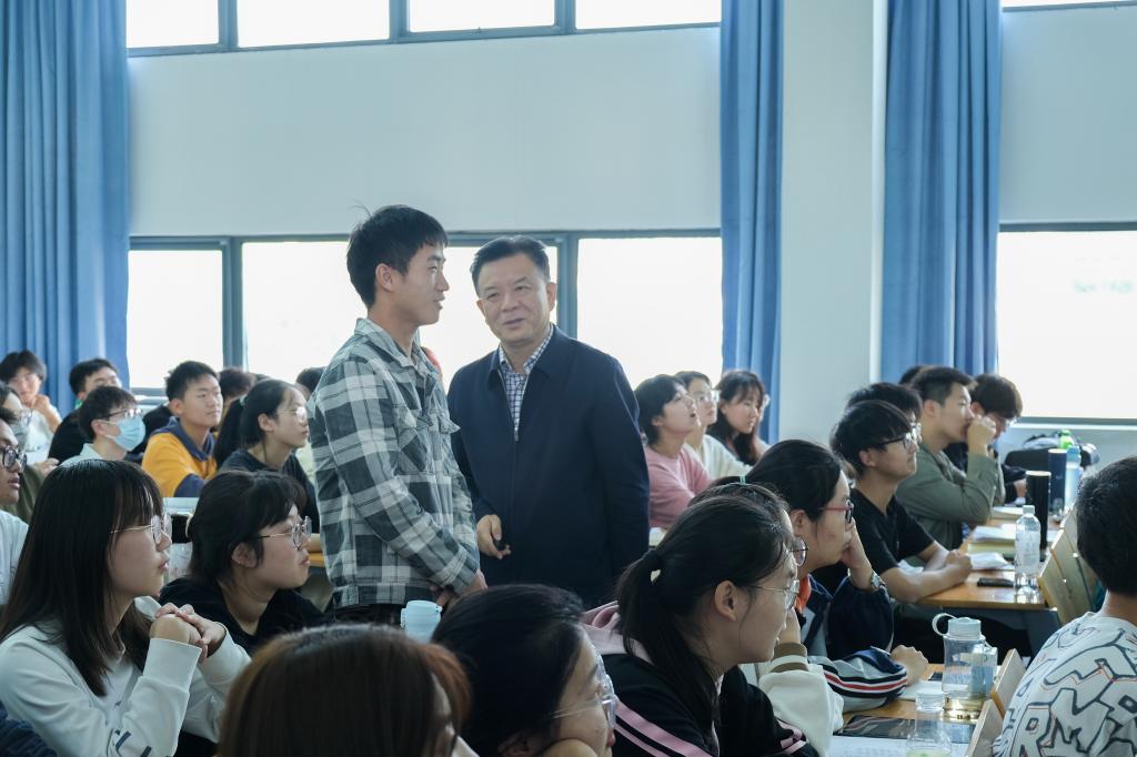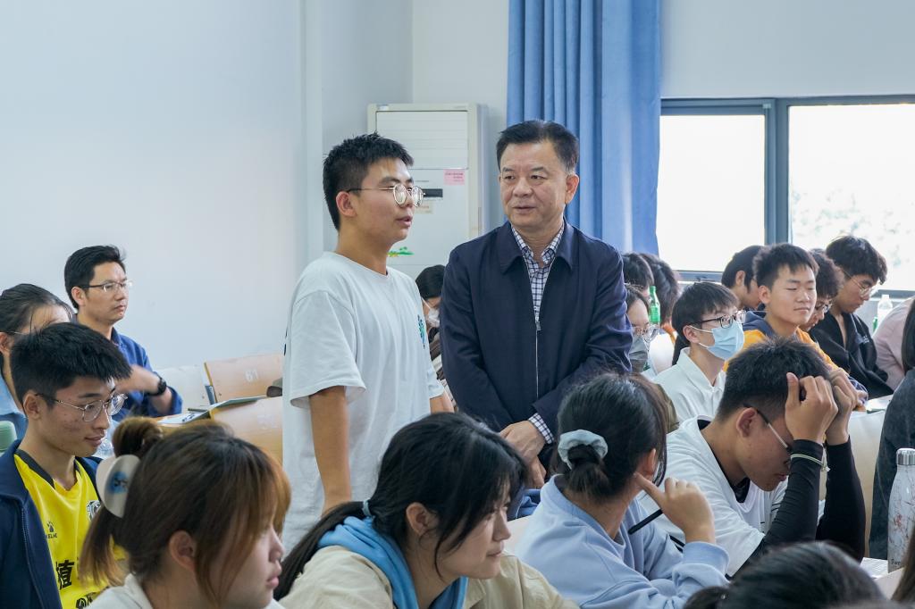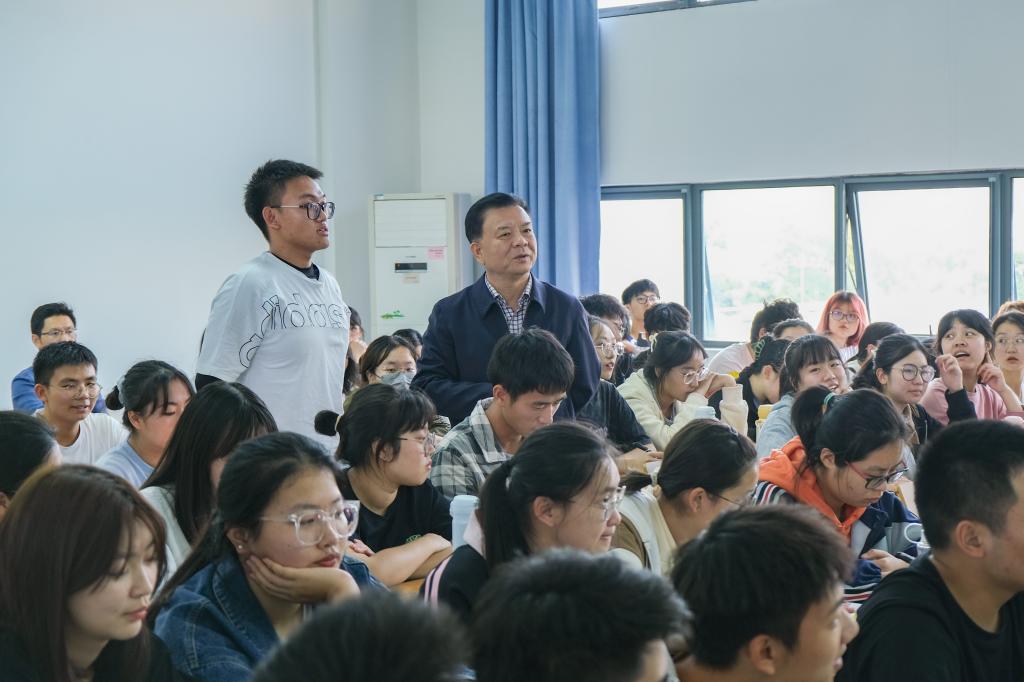 最后,姚江林介绍了张启发院士、傅廷栋院士、邓秀新院士等科学家科研报国故事。他借此向同学们提问“作为新时代的华农学子,应该如何为国家粮食安全做出自己的贡献?”“理论和实践相结合。”来自植生2202班的游宇回答道,“扎实学好专业知识的同时,借助学院‘三田三早’实践平台,将所学知识运用到实践中,真正做到把论文写在大地上。”