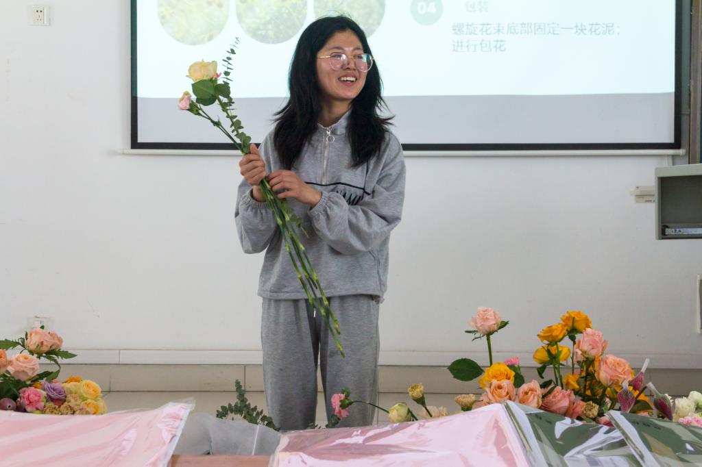 邀请下,由园林院主办的“春色如约,指尖意境” 主题插花活动在三教A102教室如火如荼的进行。“春来人间久矣,花已漫遍山野”,在大家充分了解了插花的基本种类、基本原则以及操作的安全规范后,同学们便一头扎进花的海洋,用他们灵巧的双手为花朵编织衣裳,打造专属自己的作品。“本次活动不仅陶冶了同学们的情操,也让我们收获了丰富的插花技巧,提升了艺术审美情趣。”智农2202班罗庭汉活动后表示。