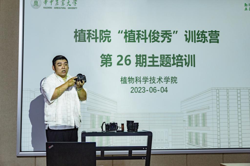 在三综A705举办“植科俊秀”训练营第26期活动。本次培训以“手机运镜与快速出片/单反相机快速上手”为主题,特别邀请武汉有教文化传播有限公司摄像师易俊作为主讲人,分享摄影技术。