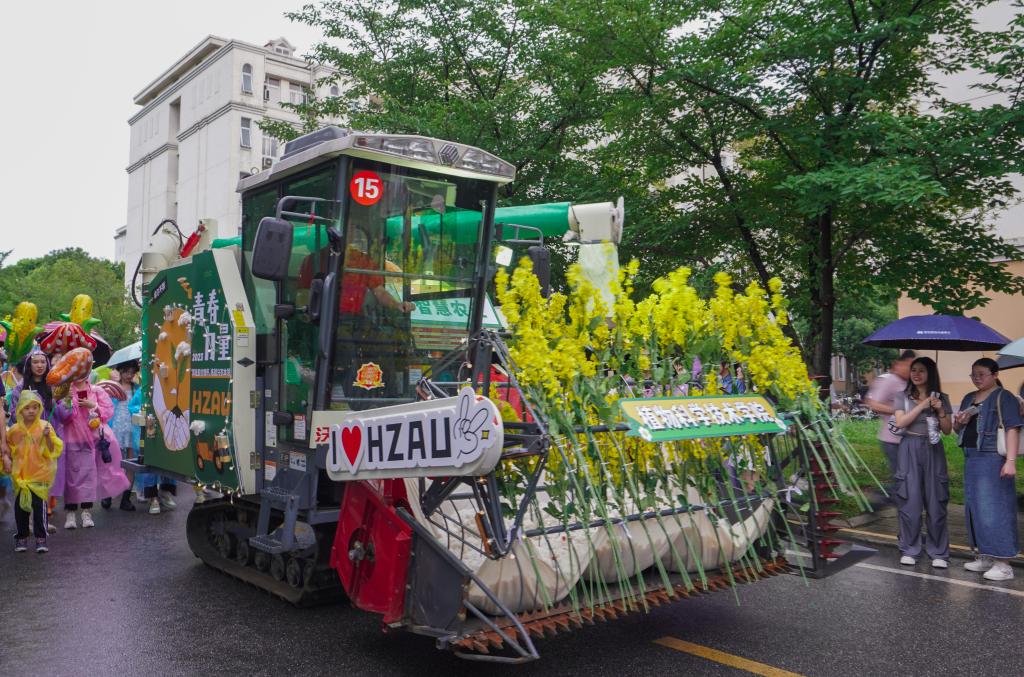 “砥砺深耕,笃行致远”。车尾摆放的油菜、玉米、棉花、蘑菇、水稻等农作物见证着植科学子四年如一日的深耕实践,花车背面的五彩蝴蝶,意指每一位植科学子闪亮动人的四年青春,如蝶羽一般,华丽蜕变,展翅高飞。