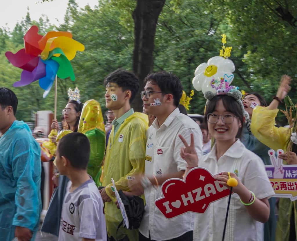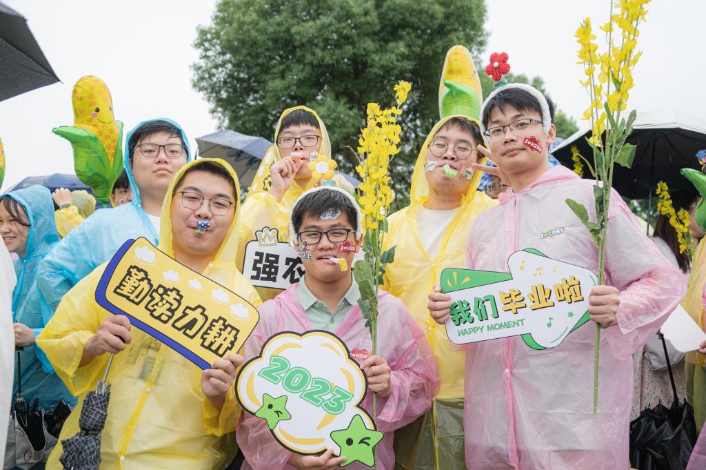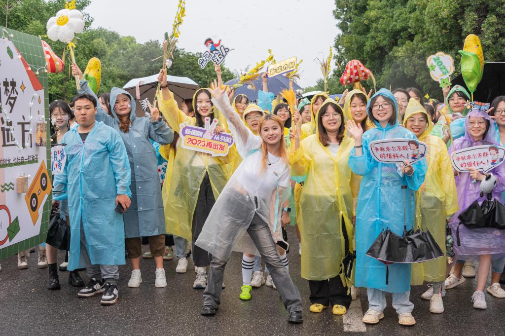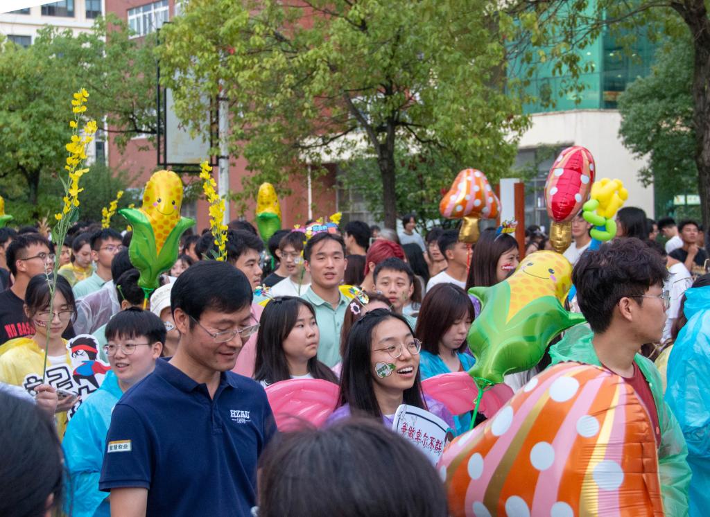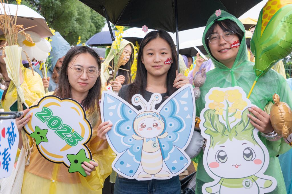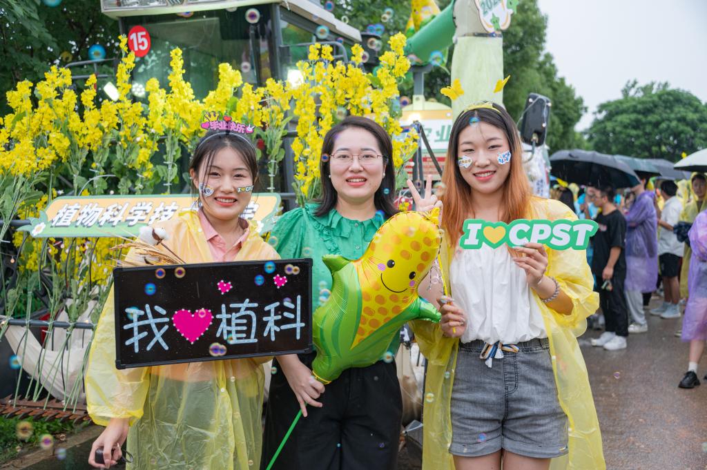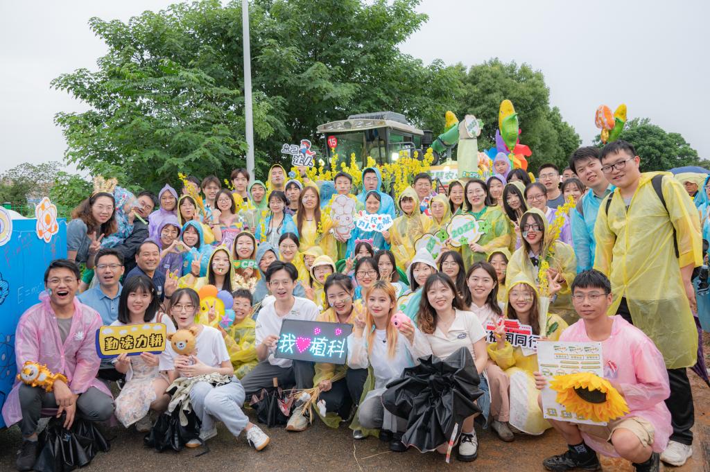 组成的队伍最后出发,他们面带微笑,脸上贴着“与祖国同行”“为人民奉献”的贴纸,他们手持着“知农爱农”“争做卓尔不群的植科人”“我们毕业啦”等卡牌,传递着对毕业生们最真挚的期许与祝福。
