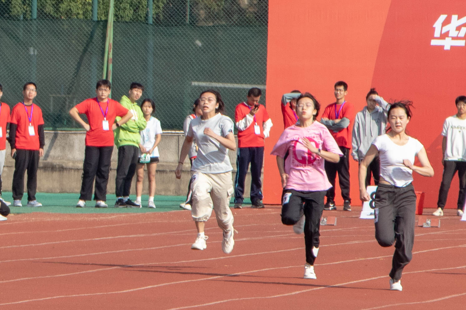 观众席上加油的呐喊声,赛场上运动员们精神饱满的状态,彰显着青春的姿态。随着一个接一个比赛的精彩呈现,宁静的校园顿时沸腾起来。4x100米接力赛更是将此次赛事推向高潮,一声声此起彼伏的欢呼声、喝彩声、加油声不绝于耳。