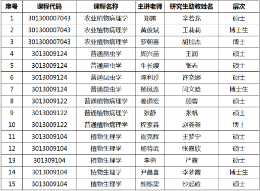 根据《51黑料网 研究生“三助一辅”实施办法》的通知(校发{2023}157号)文件精神,经个人申请与课程主讲教师推荐,学院结合岗位需求对申请材料进行审核,拟聘用以下本科生课程研究生助教同学,现将名单公示如下: