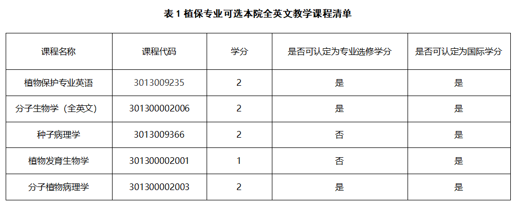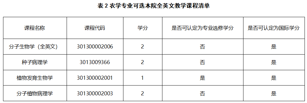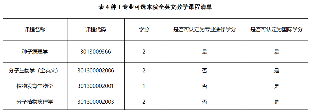 其中指定选修《种子病理学》因种工专业学生必须要修读,若认定国际学分后所差的2学分可以任意再选相应的中文课程学分。