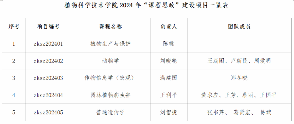 关于开展2024年本科课程思政示范项目申报工作的通知》精神,为鼓励广大教师以立德树人为根本,发挥课程育人的主体作用,积极探索不同教学模式下开展“课程思政”,在学校立项的基础上,学院决定立项陈桃老师主持的《植物生产与保护》等5门课程开展院级课程思政示范建设。