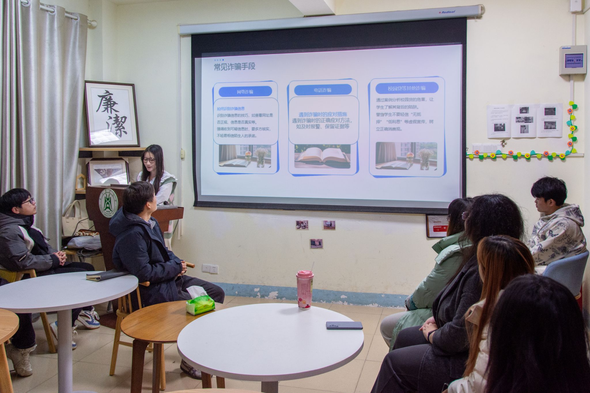 安全问题与纪律教育也是本次班会的重要议题。植生2402班班主任贾浩洋老师以班级同学QQ号被盗事件为例,提醒学生增强防诈意识。辅导员王艺菲强调了防诈反诈的重要性,并呼吁学生调整作息,注意身心健康。