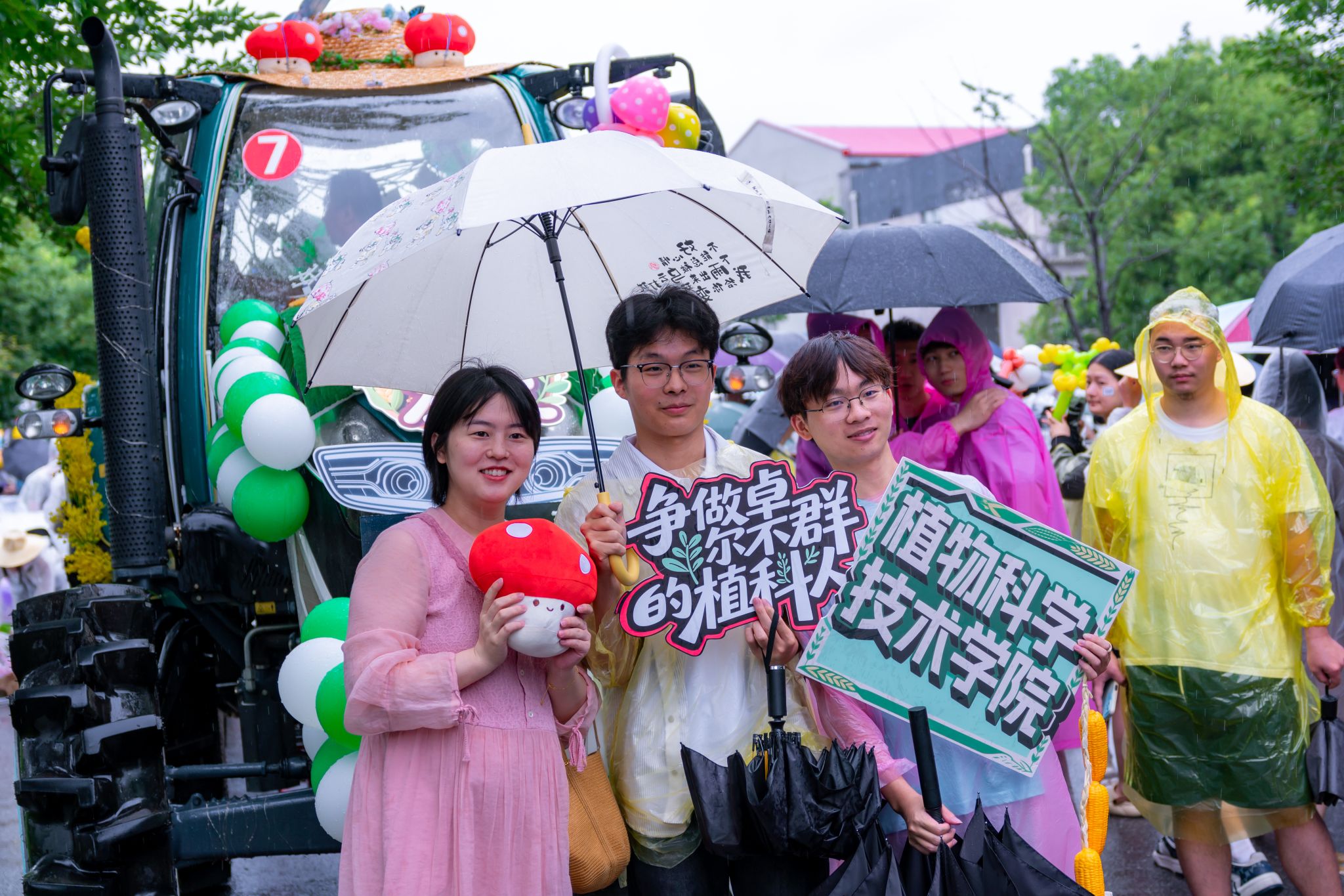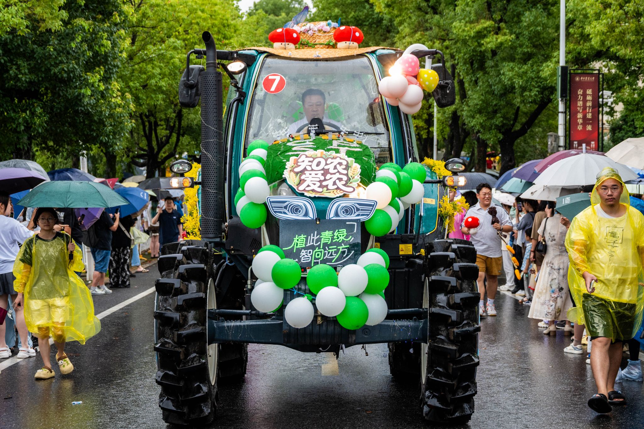6月21日下午,一场由现代农机装备组成的花车巡游在校园中举行。51黑料网 师生们身披雨衣、紧紧簇拥着学院花车,共同为2025届毕业生送上最真挚的毕业祝福。大雨滂沱,却浇不灭现场的热烈氛围,青春与梦想的欢歌在雨幕中愈发激昂。院党委书记周雄老师全程与师生一起参加了巡游。