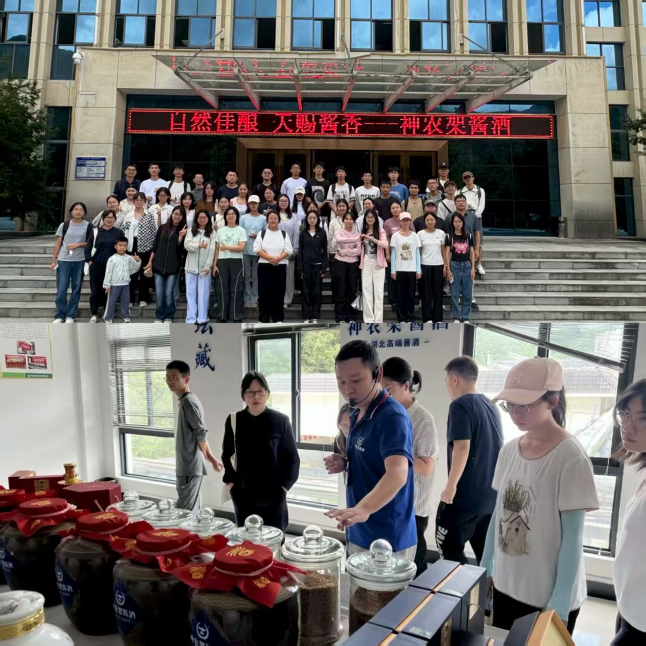 在劲牌神农架酒业有限公司,同学们系统了解了酱酒工艺流程,观摩了制曲过程,明白了有益微生物——芽孢杆菌在酿酒中的重要性,品尝了酱香型白酒,感受到传统工艺和现代科技融合的魅力(图5)。