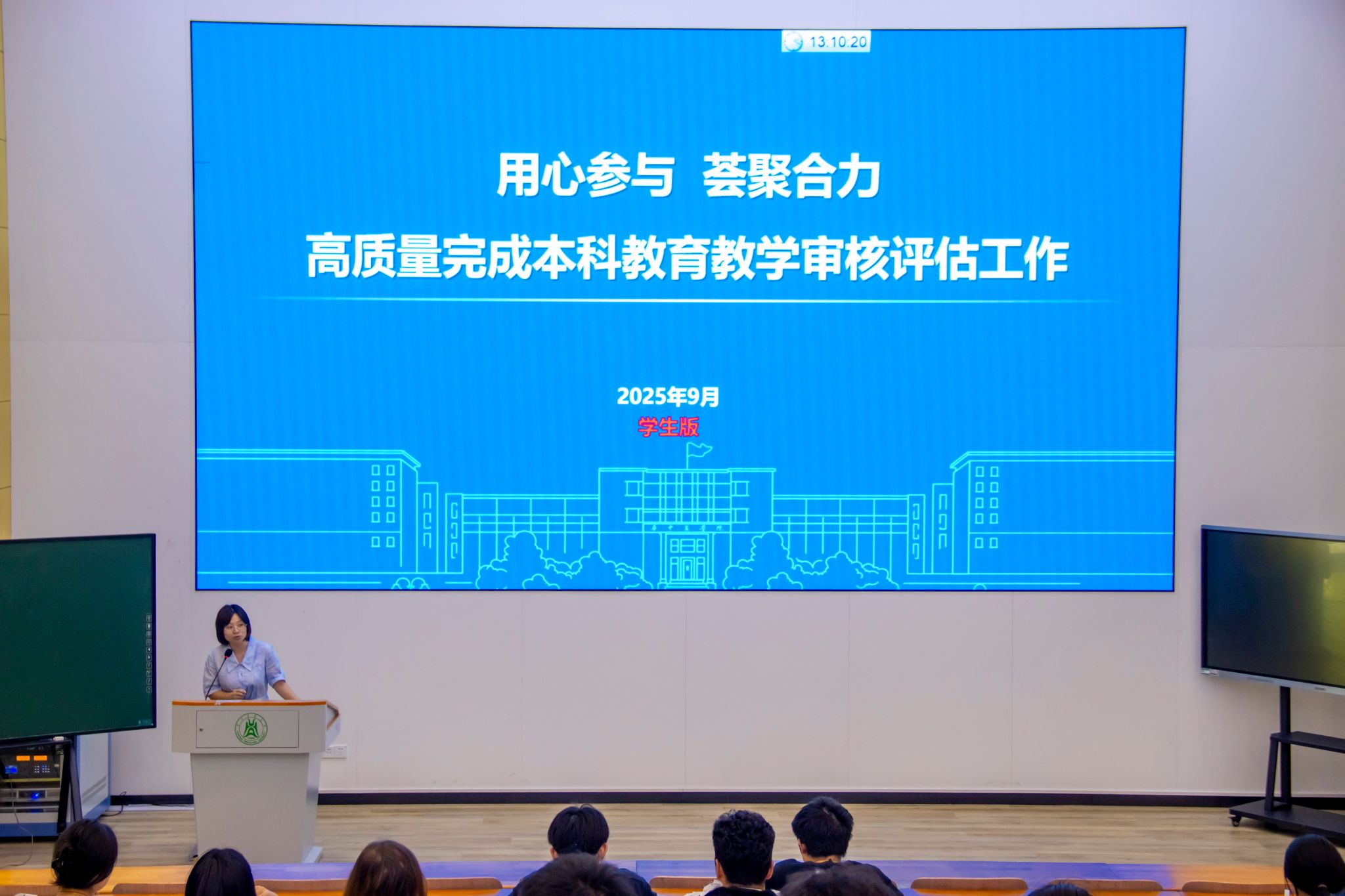 会议最后,张露就2025年本科教育教学审核评估工作进行专题说明,系统阐述了审核评估的核心意义、学校教育教学理念、特色举措及建设成效。她强调,审核评估是事关学校发展的系统性工程,需要全校师生凝心聚力、协同推进,全体学生应积极参与评估各项工作,共同推动学校教育教学质量提升。现场还组织开展了《在校生学习体验调查报告》填写工作。