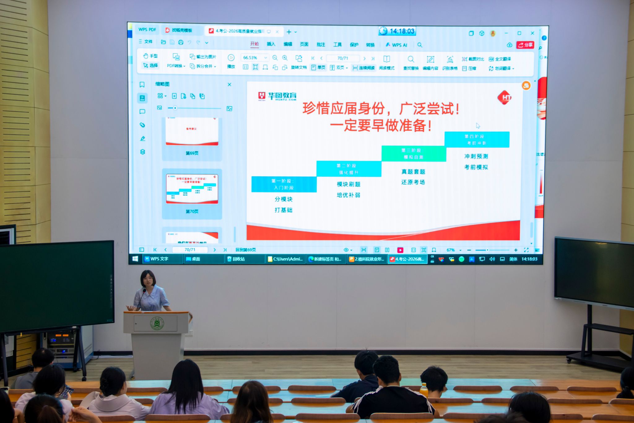 针对计划考研的同学,张露系统分析了当前研究生招生考试趋势,包括报考人数结构变化、招生计划动态调整、复试考核权重提升等核心变化,提出“科学复习备考、理性择校定位、高效时间管理、精准能力评估”四大备考要点,鼓励同学们结合自身实际合理规划目标,避免盲目跟风。