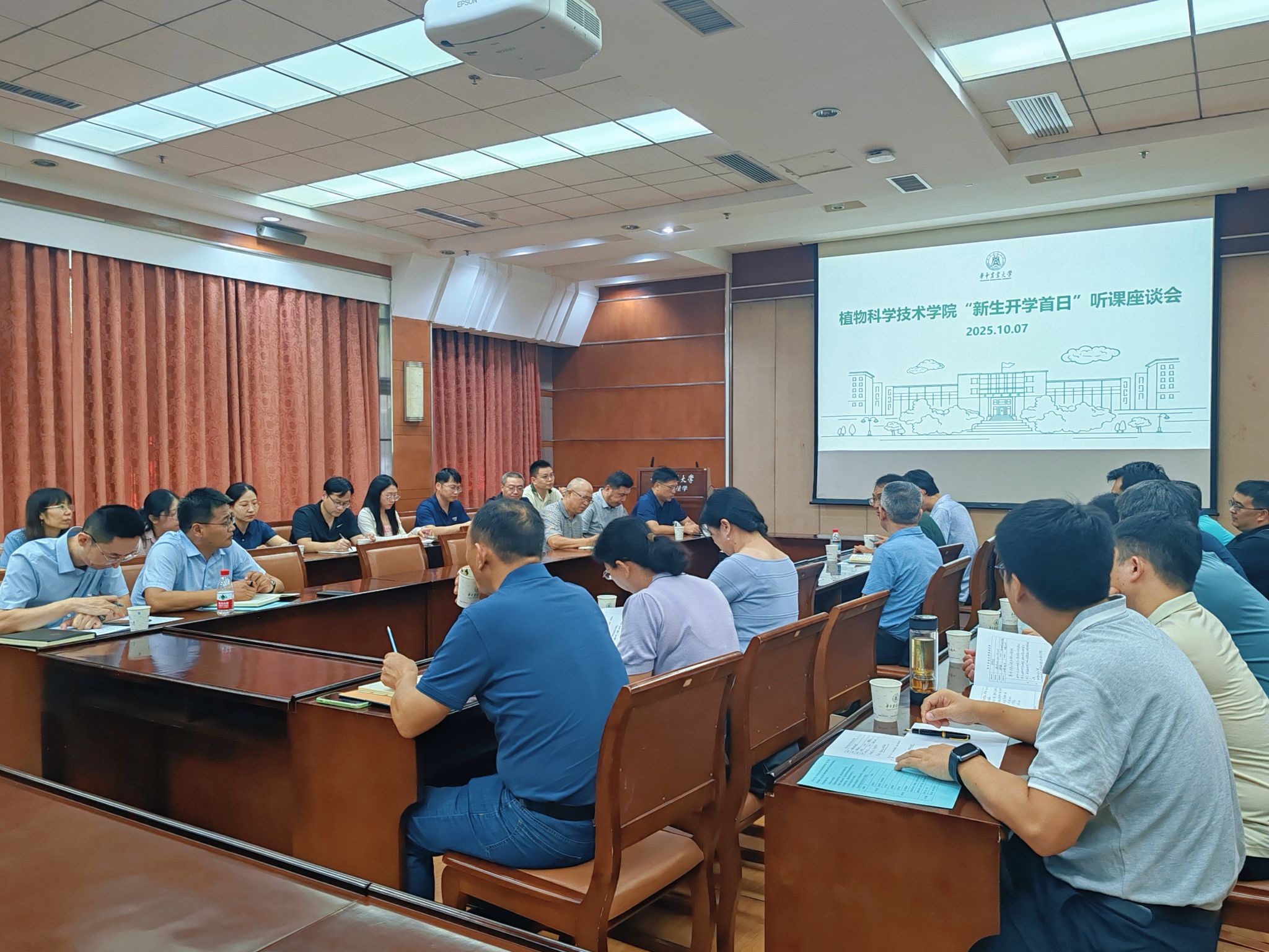 于2025年9月-10月开展了为期两个月的全院教师磨课专项活动。10月7日下午,学院以“新生开学首日”听课反馈工作为契机在分子楼103会议室召开座谈会。学校党委副书记、纪委书记廖济忠、学院领导班子成员、教研室主任及任课教师代表等35余人参会,会议由副院长罗朝喜主持。