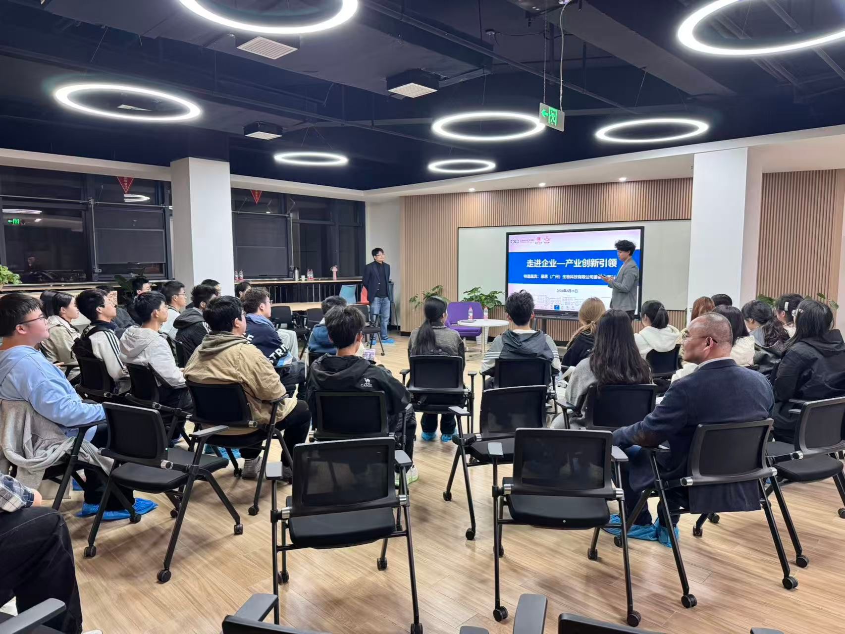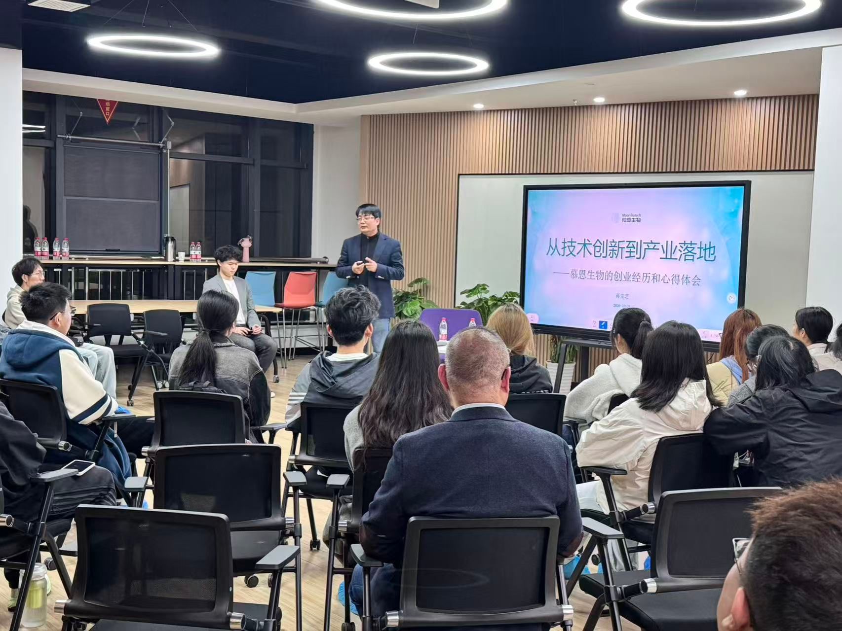 3月26日晚,慕恩生物科技有限公司董事长、我院2001级校友蒋先芝博士在洪山实验室三楼开放研讨区与40余名学生共话“创业之路”。活动由植生2508班白庭恺同学主持。
