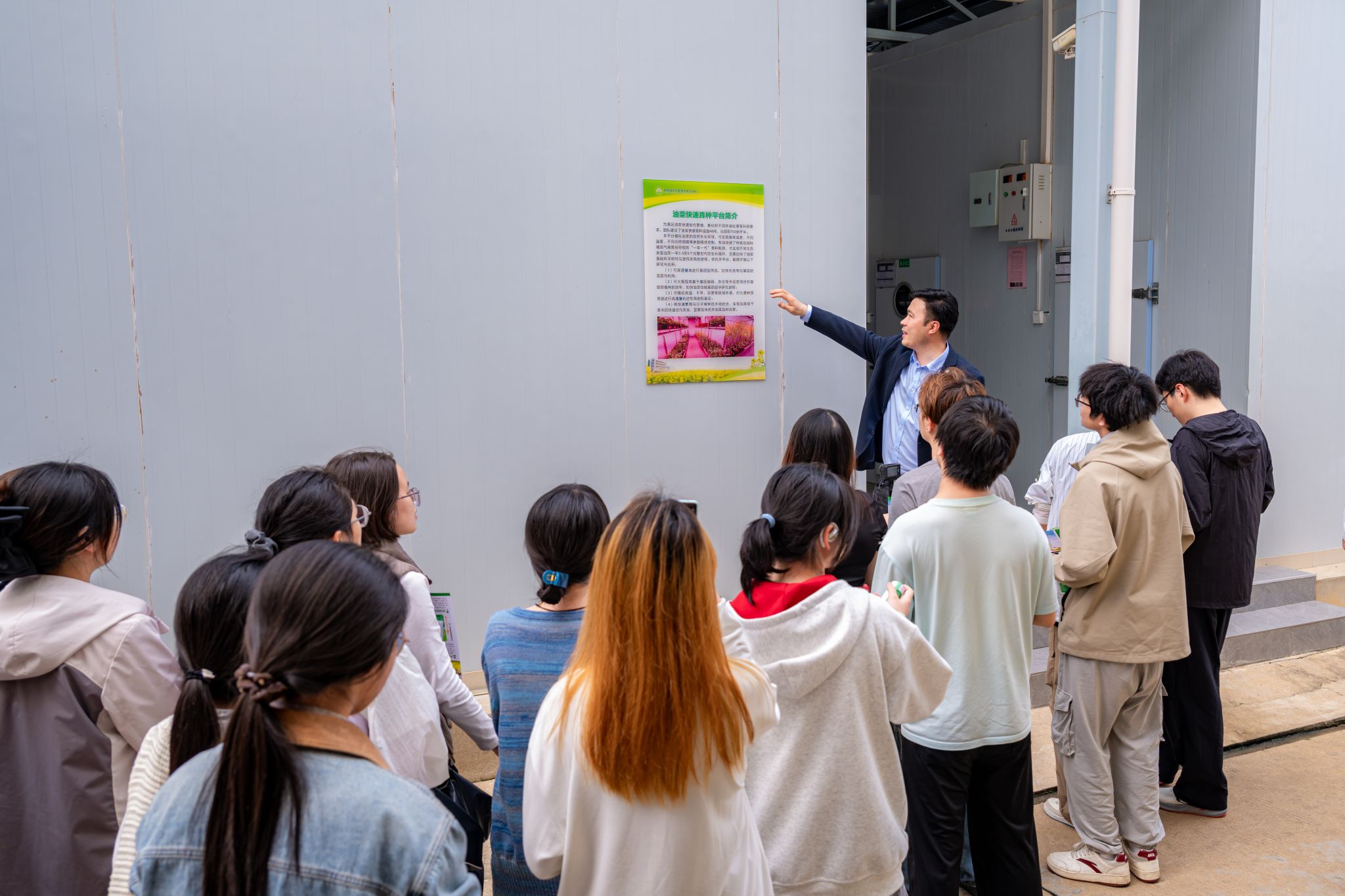 油菜团队熊秋芳、杨超等八位老师带队讲解,带领同学们沉浸式探访油菜育种科研前沿,感悟农业科研魅力。