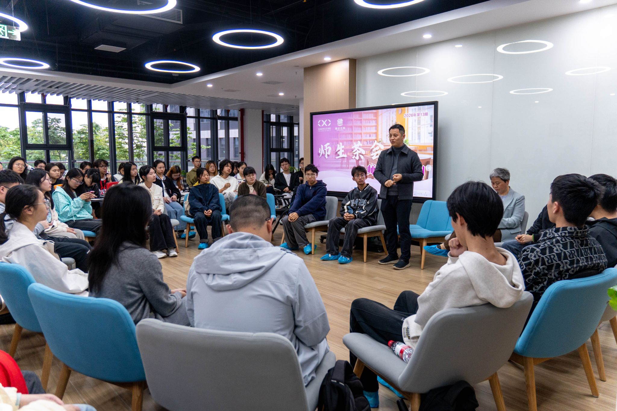 、生命科学交叉学院副院长鄢文豪,马克思主义学院教师张利华出席,围绕学生成长规划、专业发展前景、未来就业方向等话题与同学们深入交流。