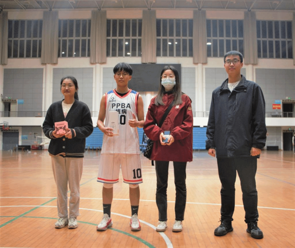 比赛结束后,由何顺老师、辅导员任伟老师、练人杰老师分别向各获奖代表队颁奖。随后辅导员任伟老师向男子三分球和女子定点投篮比赛获胜者颁发奖品。