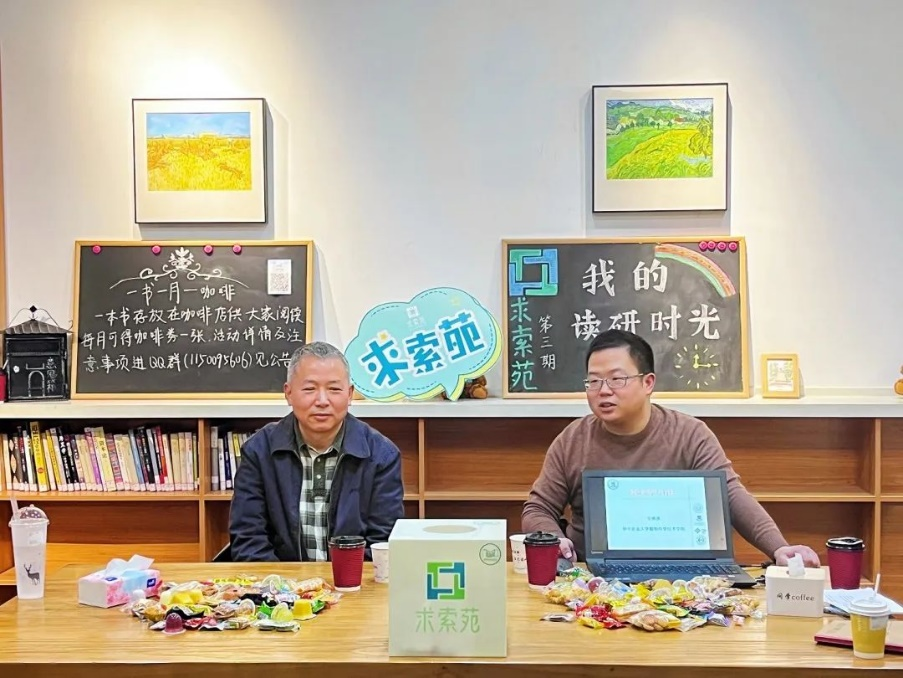 第三期“求索苑”于问学咖啡厅开展。本次活动由徐芷慧同学主持,以“我的读研时光”为主题,邀请了谢国生、吴洪洪老师与各位研究生共谈漫漫读研路。