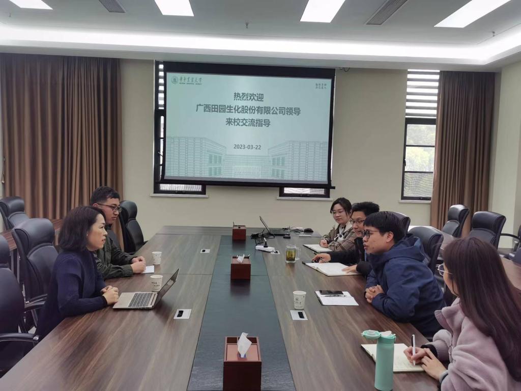 3月22日下午,广西田园生化股份有限公司研发分中心常务副总监赵帅、人力资源总监梁良来访我院商谈校企合作事宜。