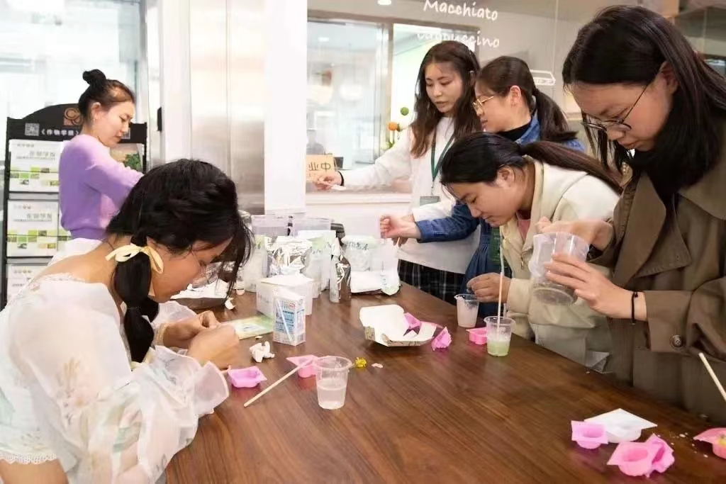 另一边,三综问学咖啡厅还举办了“植乐·油菜手工皂”活动,在油菜花季结束之时,希望将这一份金黄留存。数十名师生纷纷动手上阵,一个个“花样百出”,将金黄的油菜花融入手工肥皂中。“看着材料从最原始的状态,经过我们的手,融合一朵朵油菜花变成手工皂,内心的喜悦油然而生。”研究生张思裕说道。