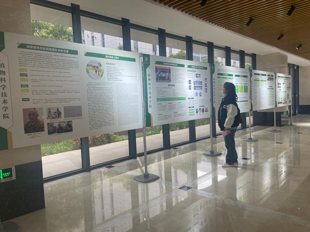 联合油菜团队在第三综合楼一楼举办“满金芸薹·油菜团队史”展览。从团队历史沿革、团队简介、代表成果、学术影响等方面展示油菜团队几十年发展历程。