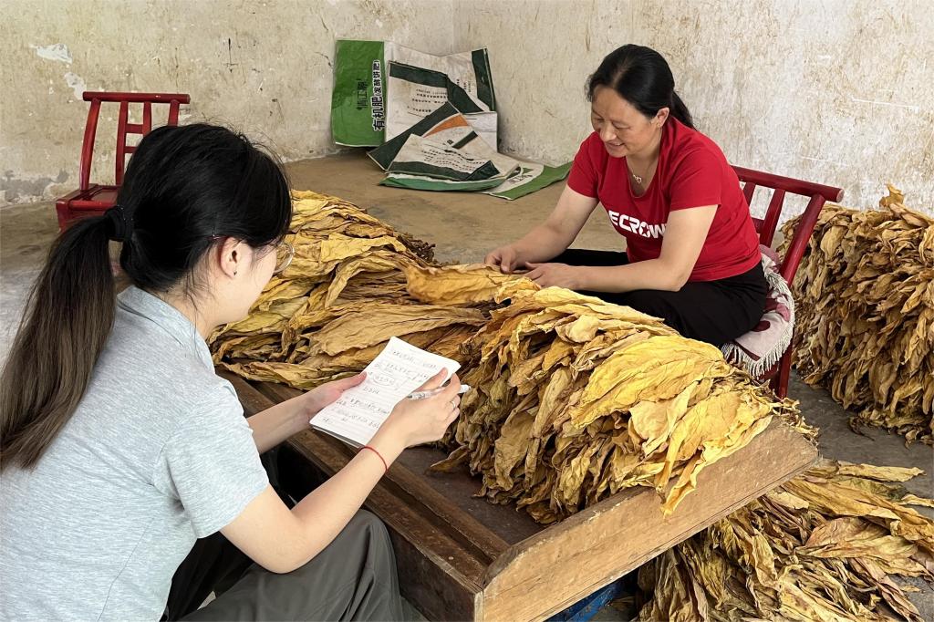 实践团队与当地烟农开展深入交流,通过问卷调查与走访相结合的形式,深入了解他们在烟草种植过程中所面临的问题和困难。同时在交流沟通中,队员们耐心倾听并积极提出疑问,在确保尊重烟农的基础上表达自己的看法和建议,把握烟农的真实需求,并做好内容记录。据了解,烟草作为当地的一种主要经济来源,在生长过程中病害常发,常造成较为严重的经济损失,目前亟待解决的问题主要有:青枯病目前仍无特效药进行防治、农户进行烟叶烤制时烤房数量有限等。队员们将相关问题归纳统计,并转达给相关技术人员请求反馈,共同探讨、提供解决问题的方法。