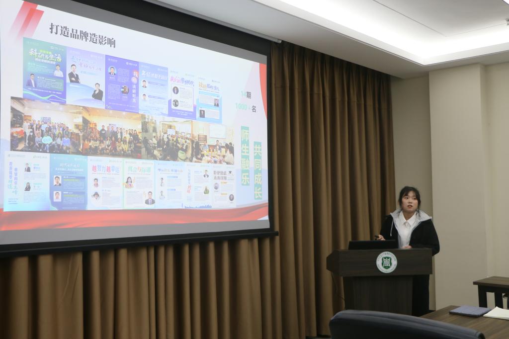 张思裕作为学术科技部的负责人,汇报总结了过去一年来学术科技部的工作情况。作为学术活动小闹钟,打造品牌造影响,从0到1展突破,传承经典守初心,散碎活动整合,累计宣发近300余场,举办30余场活动,在学院营造科研氛围,促进多群体之间的互动和学习,逐步开发探索自我,做卓尔不群植科人!
