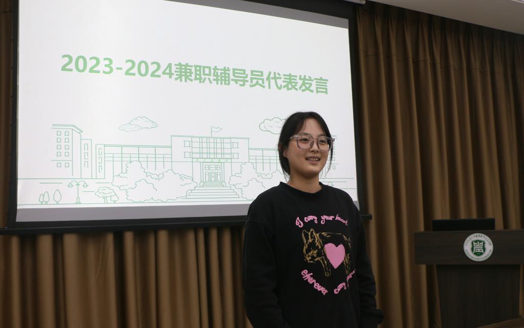 最后,田欣雨代表新一届兼职辅导员发言,对上一届兼职辅导员的工作以及成绩给予了肯定,她表示:这既是一种压力更是一种动力,对于新一届的兼职辅导员们来说也要向前辈学习,为植科的学生工作添砖加瓦,讲好植科故事。