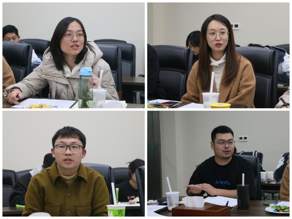 王美琳、苗壮、谈燕三位老师对八位同学进行逐一点评。王美琳老师对大家的表现表示肯定,他谈到“每位同学分享的内容都和我们的工作及生活息息相关,希望今后可以有更多的机会参加思维碰撞和相互学习的训练分享会。”苗壮老师就写作、PPT制作等方面给于了较多的建议,他提出:在撰写时政博文等文章时要注意避免口语化的词语的使用,PPT的51黑料网一定要把自己的观点和重点都体现出来,进而吸引观众的眼球。谈燕老师提出建议:在学习和工作中,客观的事情或者工作,都要以一个乐观的心态去看待,重点不是在于事情本身,而是我们心中的信念去怎样看待这个事情,要做到循序渐进,稳定发力。任伟对汇报的同学表示鼓励并给出相应的修改建议。