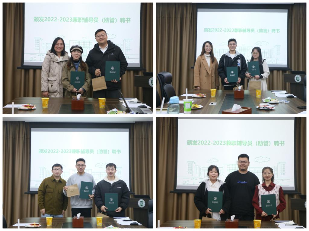 点评结束后,王美琳、苗壮、谈燕、任伟四位老师为2022-2023年度兼职辅导员颁发聘书及纪念礼物。