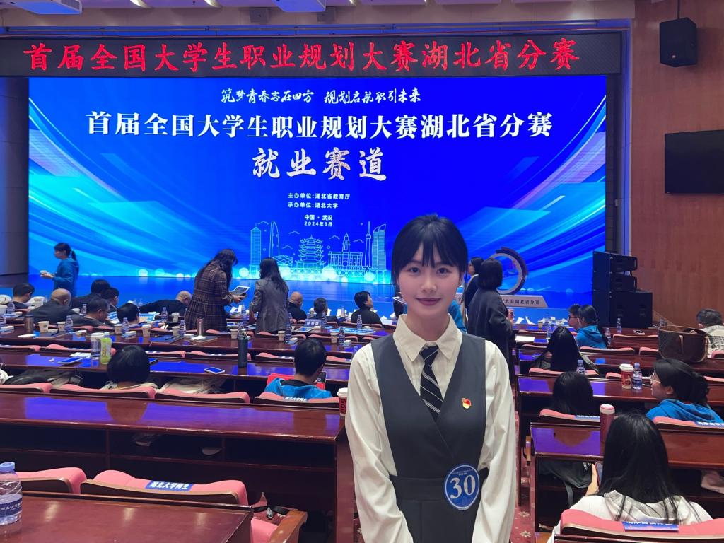 3月9日,首届全国大学生职业规划大赛湖北省决赛在湖北大学举行,我院参赛选手王琳婕获得湖北省银奖!