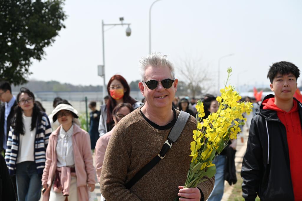 鄢文豪老师携家人以及整个实验室的学生参与了此次活动,他谈到:“学生干的事我们肯定得参与。这类型的活动不仅可以拉近老师与学生的距离,更能与家人、同事、学生们共享大好春光,欣赏校园美景。我们不仅仅是参与,更要在活动中全身心地感受大自然给我们带来的幸福感。”