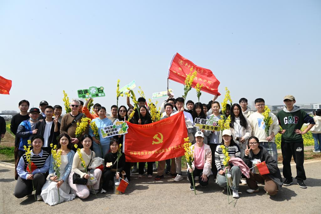 各支队伍满怀期待地从第三综合楼出发,途径油菜花田。队伍穿梭在油菜花田中,金黄的花海映入眼帘,令人陶醉其中。他们或驻足欣赏,或拍照留念,尽情享受着这难得的春日美景。随着队伍的行进,油菜花田的美景渐行渐远,但春天的气息却愈发浓郁。