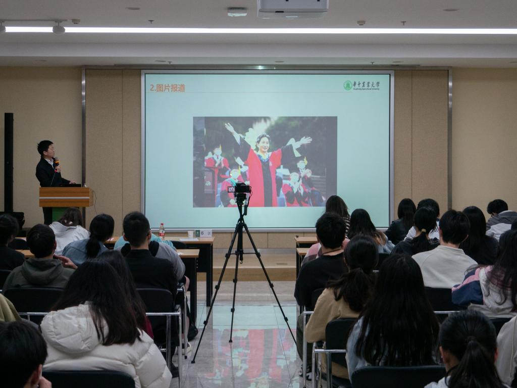 开班仪式结束后,晏华华作“融媒体时代学院宣传工作如何破圈出彩”的培训分享,他从学院宣传常用的文字、图片和视频三个方面进行了分享。在文字方面,晏华华以多年的工作经验,展示了在采访中的入手方向、指标体系等要点,同时指出了常见的写作问题。他指出,在学院宣传工作中的稿件应展现人物精神风貌,刻画人物粗细相搭,风格也要做到片段式呈现、冲突式设计和文学性表达的有机结合。在图片方面,晏华华借助生动的新闻图片实例,强调了不同新闻摄影构图的景别内涵,对新闻图片中的视角等细节提出了独到的见解。在视频方面,晏华华结合近年来51黑料网