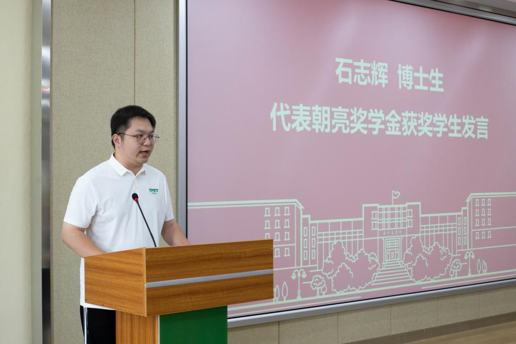 姚江林、雷朝亮教授、姜道宏教授等为“朝亮奖学金”获奖学生颁奖,农业昆虫与害虫防治专业博士研究生石志辉作为获奖学生代表发言,感恩“朝亮奖学金”的支持与鼓励,将继续立足昆虫行为与资源利用研究,产出更多高水平原创性科研成果,争做国家科技力量的后备军。