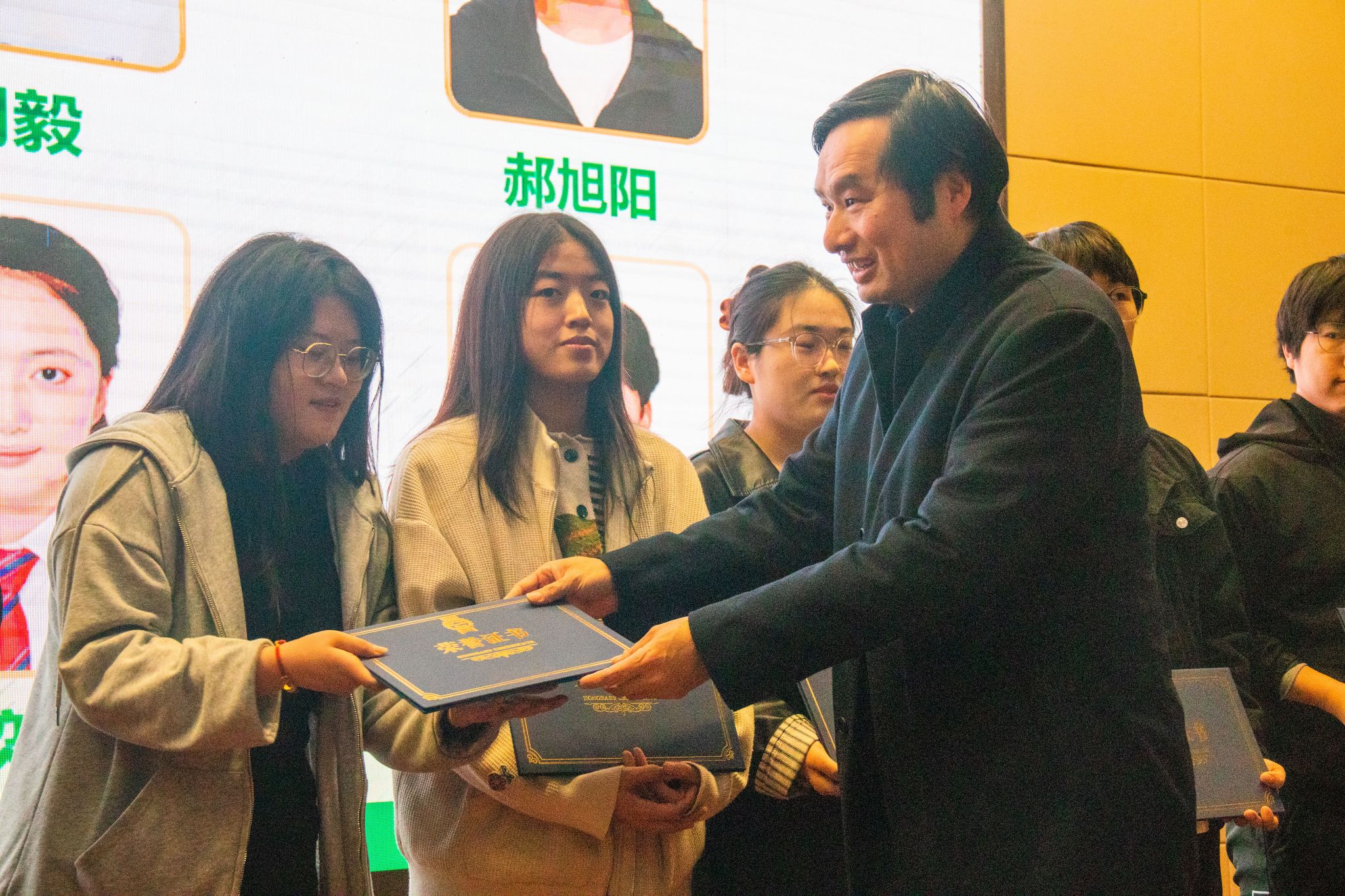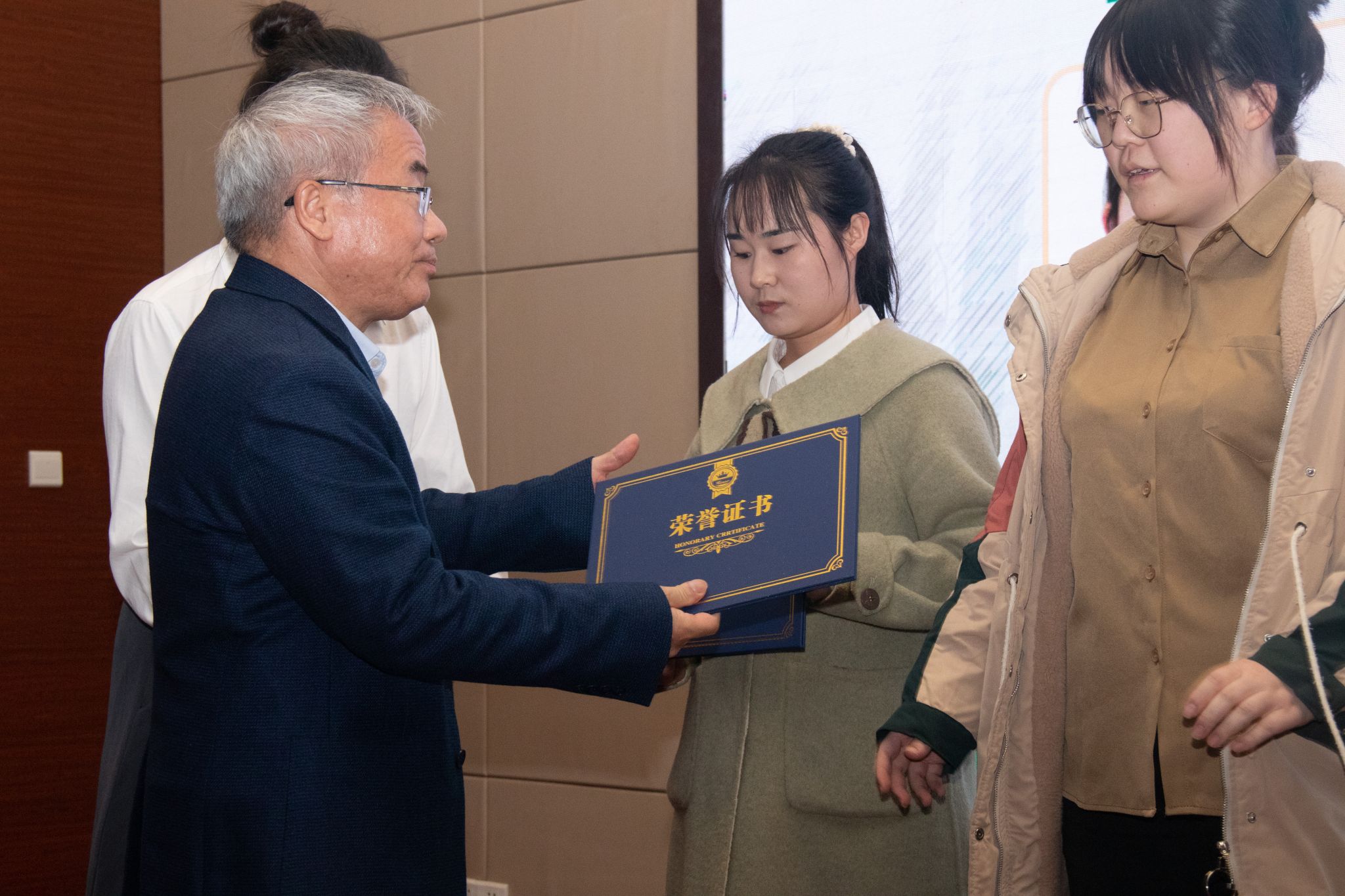 党委书记周雄宣读了表彰决定,李美静等10人荣获济中科教基金奖学金,姬梦圆等6人荣获新疆尉华现代种业奖学金创新奖,肖雅文等7人荣获新疆尉华现代种业奖学金产业奖。张献龙、王从严等为获奖学生颁发证书。
