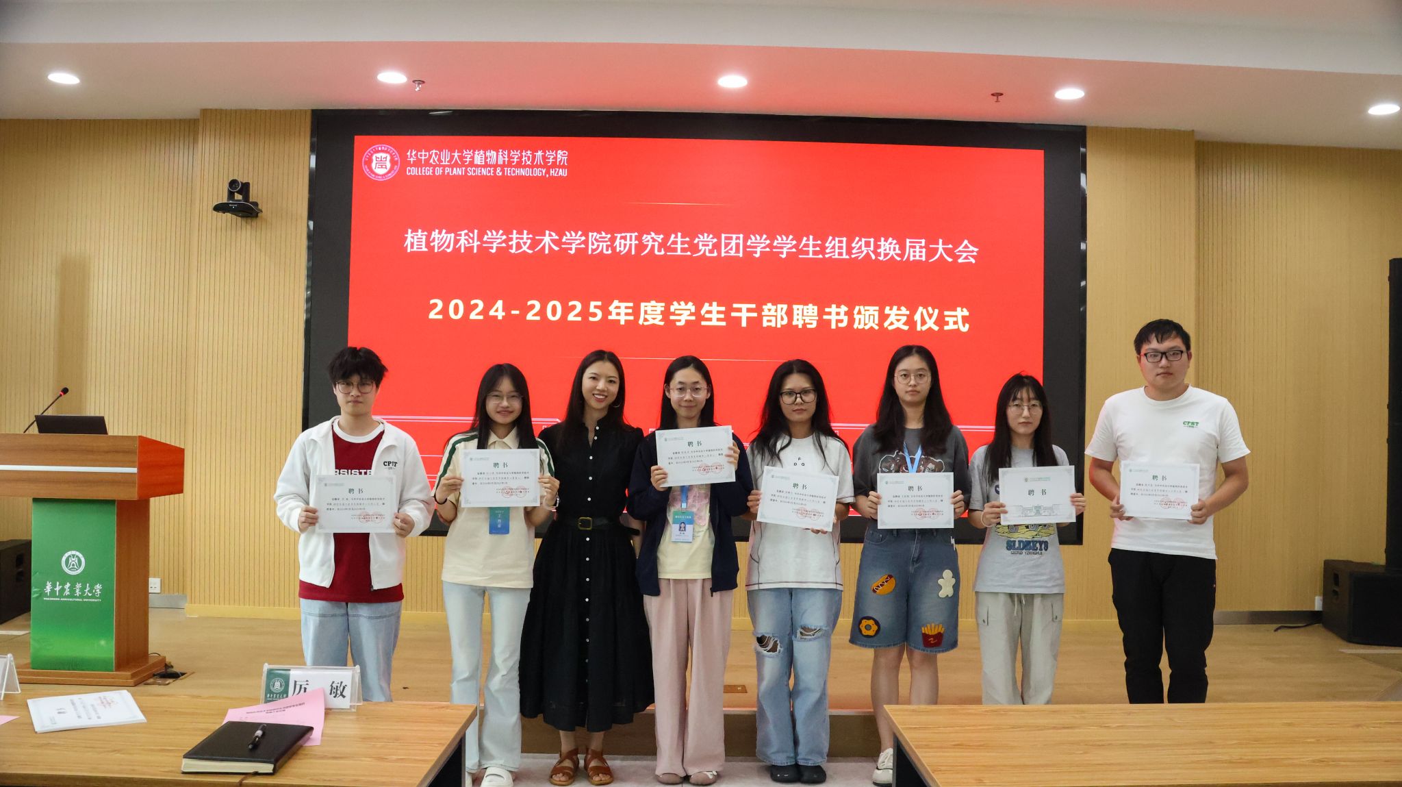 随后,厉敏、于姝宁两位辅导员为全体工作人员逐一颁发聘书,并与大家合影留念。党建中心主任徐梦婷宣读党建中心、团工委、研究生会换届名单。