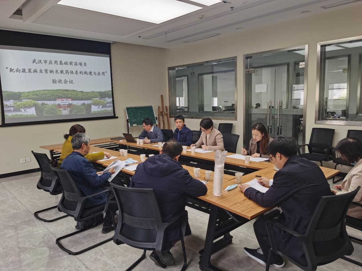 3月27日,我院李建洪教授主持的武汉市应用基础前沿项目“靶向蔬菜病虫害纳米载药体系的构建与应用”验收会在校召开。会议邀请武汉市农业科学院柯卫东研究员、中南民族大学何冬兰教授、湖北省植物保护总站周华众研究员担任验收专家。科发院重大项目管理处处长杨毅、项目管理办公室主任江晶、项目负责人及团队成员马洪菊副教授、万虎副教授和何顺副教授参加验收会。