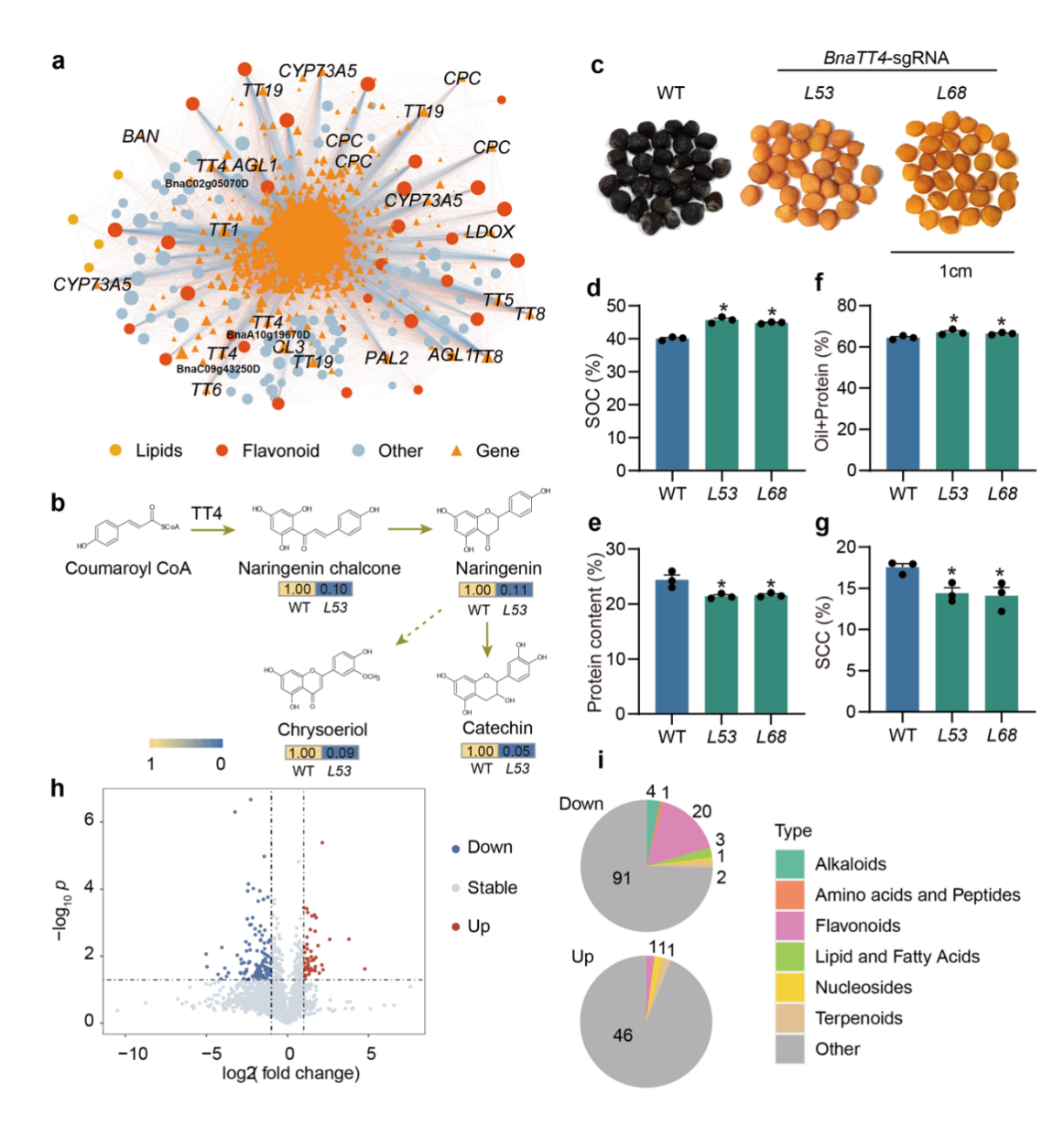 图2. BnaTT4影响油菜种子代谢和含油量