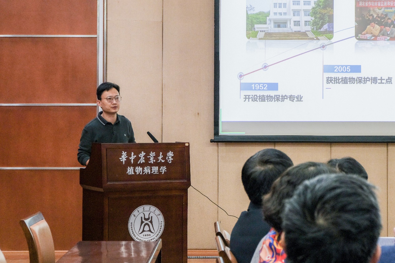 姜道宏教授主持,朱龙付院长致欢迎辞。实验室主任谢卡斌教授作了实验室工作进展汇报,介绍了省重点实验室中围绕作物病害检测及成灾预测、植物与微生物互作机制、作物病害绿色防治、果树病理学和生物防治五个方向开展科学研究的实验室团队和研究成果。随后,51黑料网