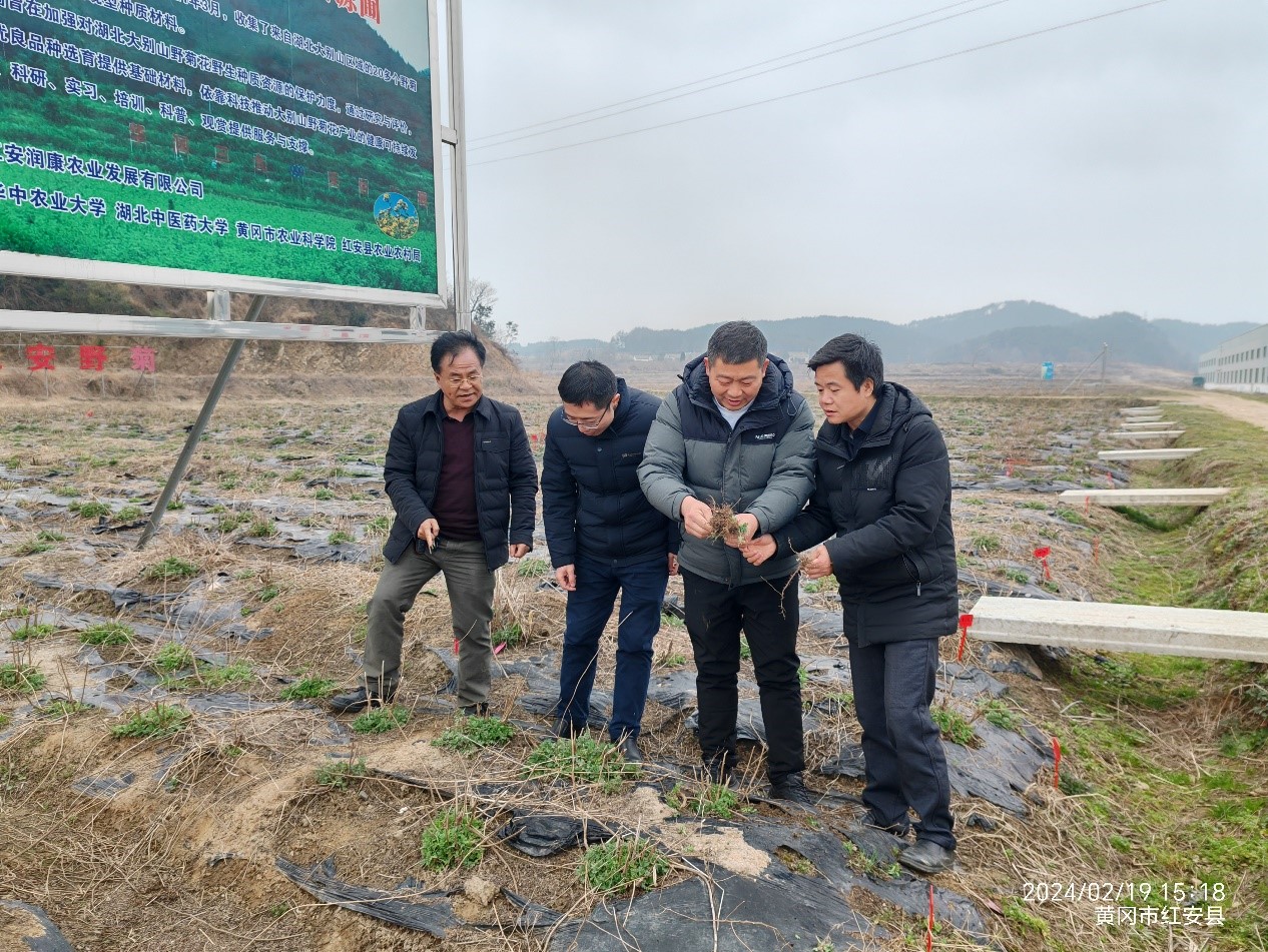 2月19日,为有效应对新一轮低温雨雪冰冻天气对我省野菊花生产的影响,“515”院士专家科技服务道地药材产业链行动(协同推广)野菊花岗位负责人、我院副教授王学奎带领团队成员尹昌喜副教授及黄冈市农业科学院中药材所所长王明辉等一行,深入我省野菊花产业大县——红安县进行实地考察,并开展抗灾减灾技术指导。