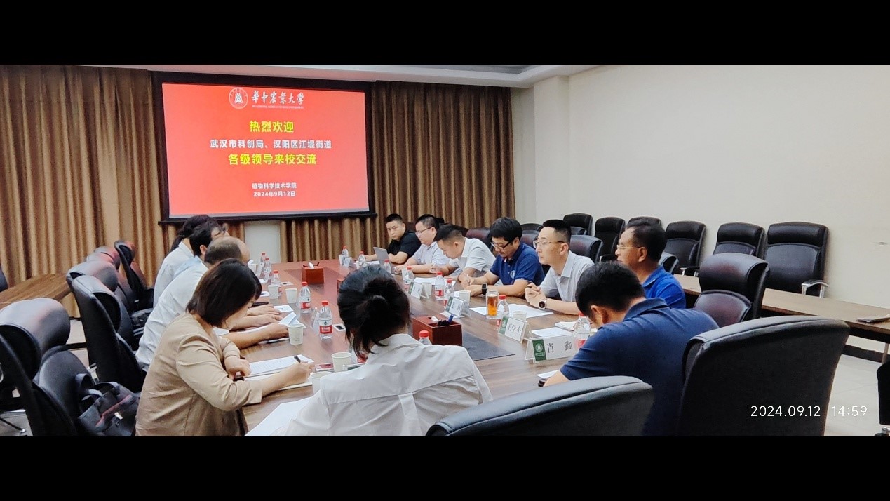 2024年9月12日,武汉市科创局企业服务中心高级工程师刘元林、汉阳区江堤街道当工委书记王华勇,带领工作专班以及辖区内高新企业武汉天感智能科技有限公司负责人等一行10人来我院进行交流、座谈,寻求辖区内高新企业与我院在智慧农业方面的合作。