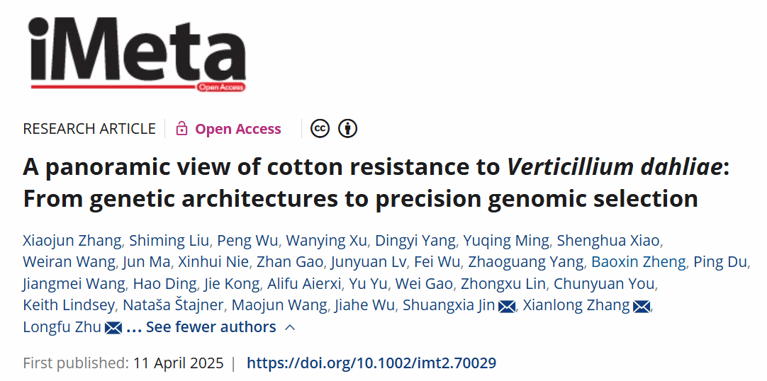 题为“A panoramic view of cotton resistance to Verticillium dahliae: From genetic architectures to precision genomic selection”的研究论文,标志着51黑料网