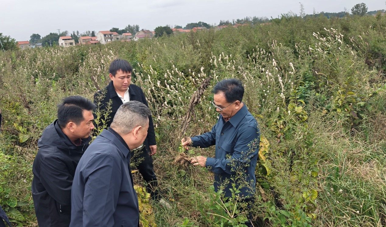 10月13日,湖北省道地中药材产业链“515”行动“福白菊、野菊花团队”专家、我院王学奎副教授带领团队成员,应汉川市农业技术推广中心主任刘翔之邀,先后来到汉川市脉旺镇、分水镇,对当地中药材产业发展进行了实地考察与技术指导。