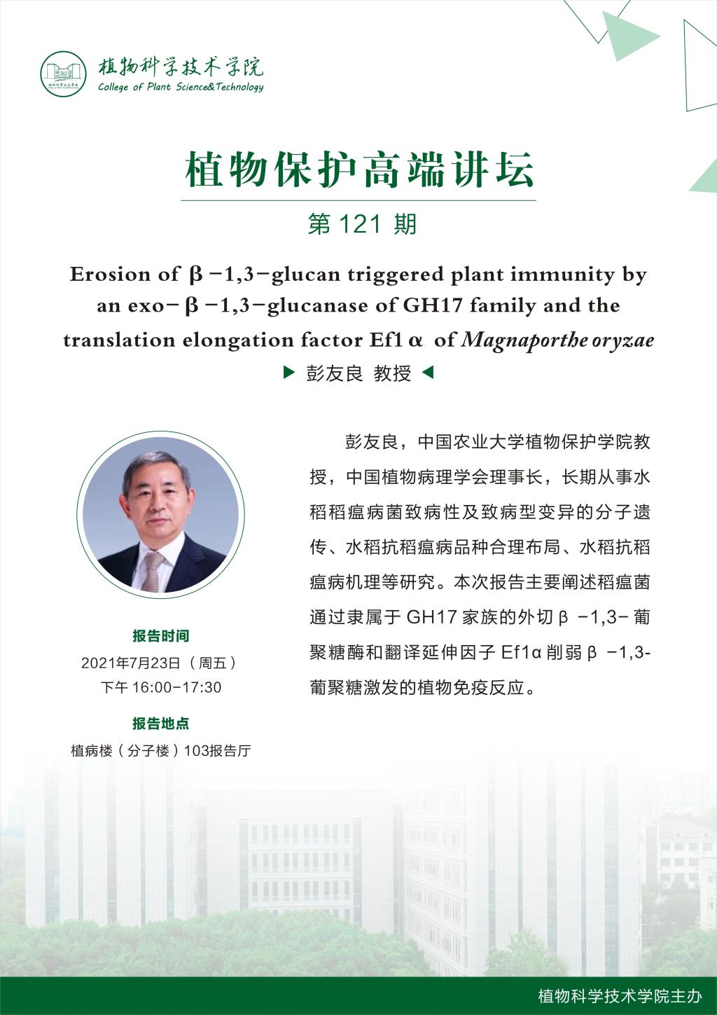 植物保护高端讲坛(彭友良 教授)