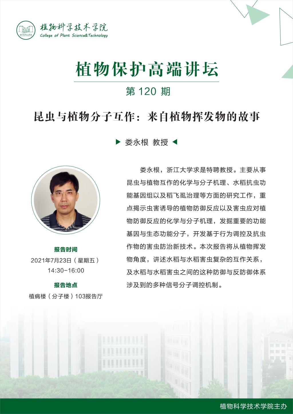 植物保护高端讲坛(娄永根 教授)