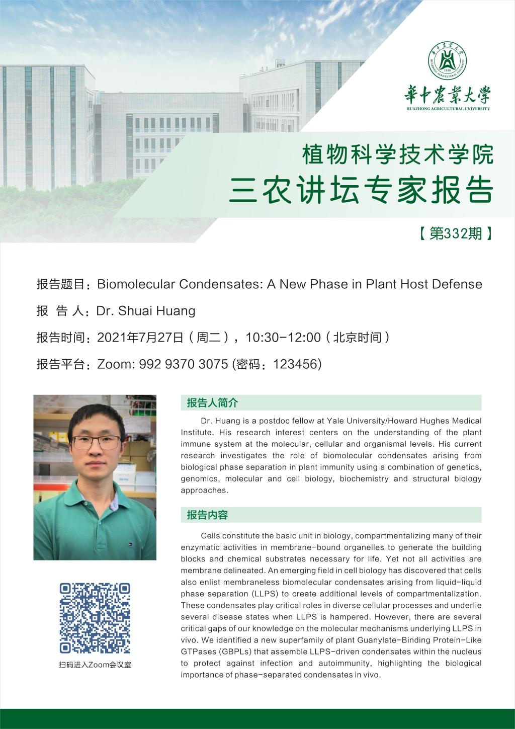 三农讲坛(Dr.Shuai Huang)