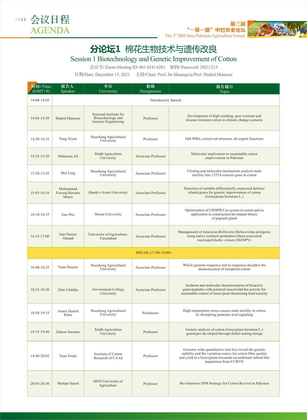 第三届“一带一路”中巴农业论坛 分论坛:植物生物技术与遗传改良